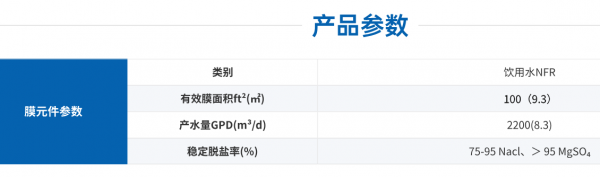 膜天NFR纳滤膜元件面积大,产水量高,适用于高度脱除杀虫剂、除草剂等有机物和中高度脱除盐分的处理领域。